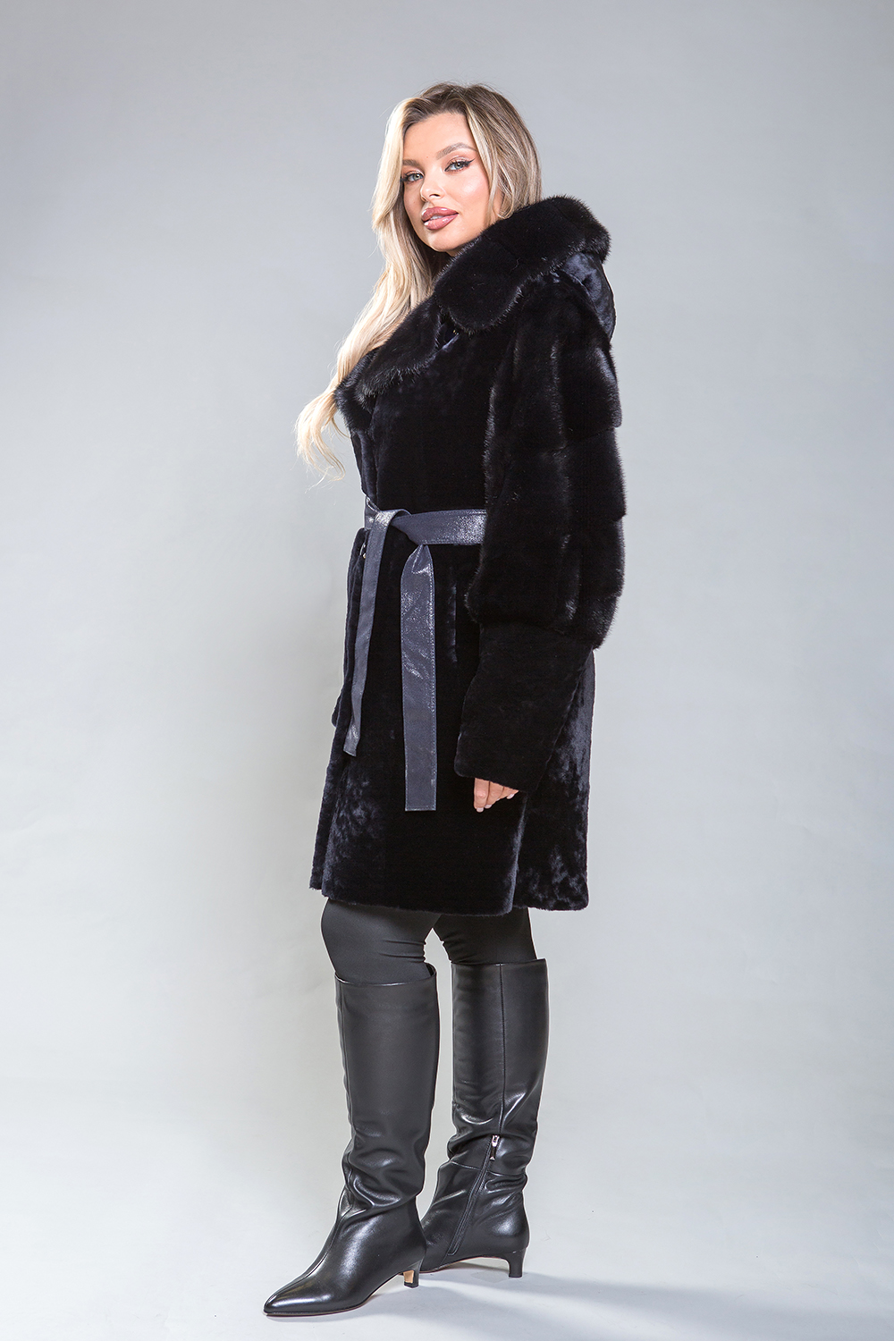 Эффектное полупальто из премиальной овчины с изысканными деталями. Капюшон и рукава до локтя выполнены из норки. Высококачественная овчина премиум-класса обеспечивает тепло и комфорт, оставаясь эффективной даже при высокой влажности. Капюшон можно сложить в английский воротник или зафиксировать пуговицей. Модель застегивается на пуговицы. Карманы и края полупальто изготовлены из натуральной замши. Длина изделия — 95 сантиметров, что делает его удобным для повседневной носки. Легкий вес и отличная теплоизоляция делают это полупальто ключевым элементом гардероба. Стильная и оригинальная шубка не останется незамеченной!