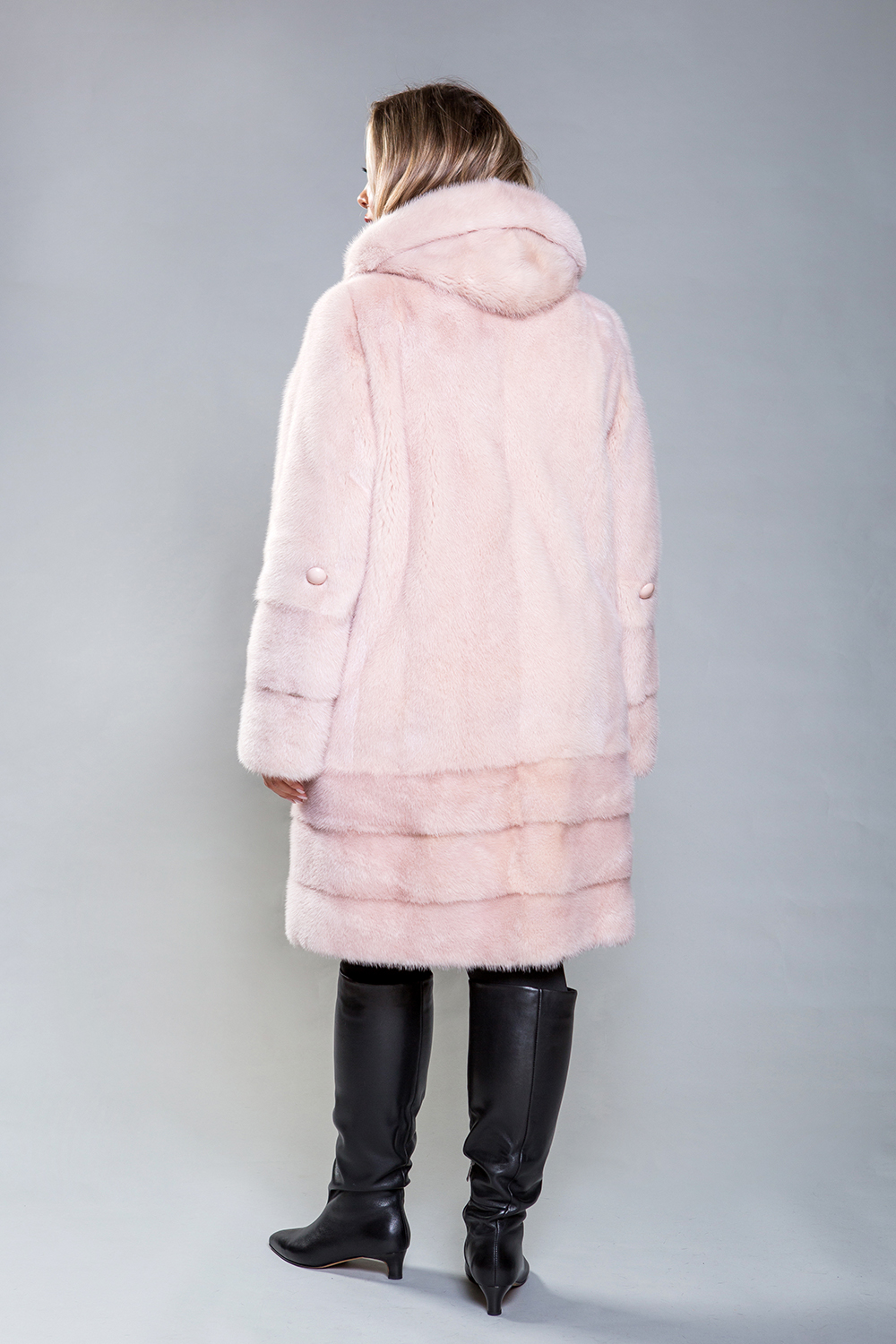 Полупальто из норкового меха с эффектным капюшоном выполнено в комбинированном стиле. Верх изделия создан с помощью техники роспуска, а низ состоит из поперечно выложенных пластин. Модель оснащена регулируемыми утяжками на талии и рукавах, что позволяет идеально подчеркнуть фигуру. Длина полупальто составляет 100 см, а длину рукавов можно легко скорректировать. Благодаря удобному крою и качественным материалам, это изделие станет вашим незаменимым элементом гардероба, обеспечивая максимальный комфорт. Элегантный розовый оттенок добавит вашему образу изысканности и гармонии.