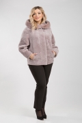 Курточка из меха овчины (астрагана). Капюшон модели декорирован мехом норки. Крой изделия пластины. Фасон рукава свободный. Длина модели 75 см. Изделие застегивается на клипсы. Курточка легкая и теплая. Светлое изделие из натурального астрагана освежает и омолаживает образ!