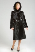 Полупальто из меха овчины с капюшоном. Прямой классический силуэт. Верх изделия выполнен норкой «в росшив». Меховой пояс в комплекте.