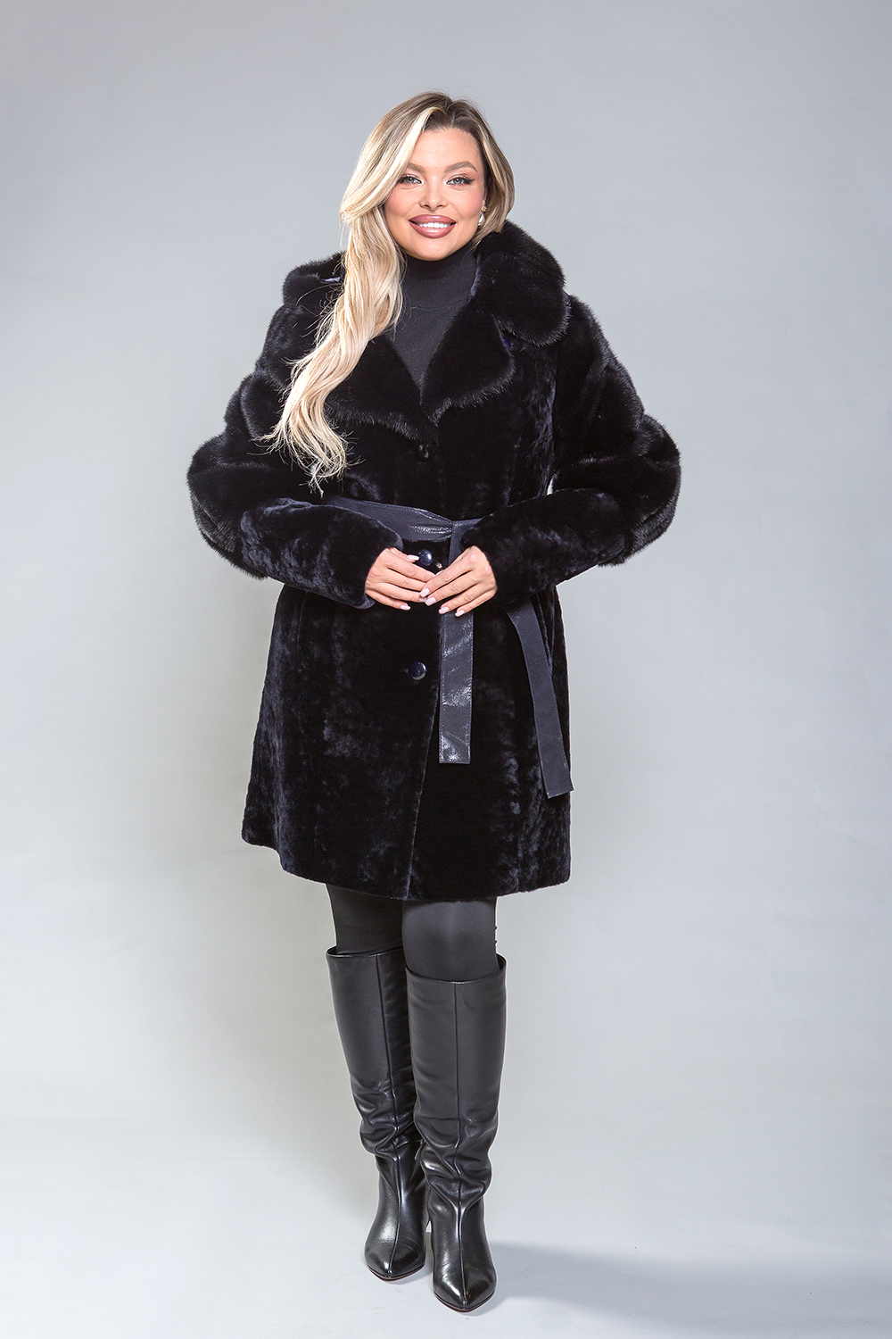 Эффектное полупальто из премиальной овчины с изысканными деталями. Капюшон и рукава до локтя выполнены из норки. Высококачественная овчина премиум-класса обеспечивает тепло и комфорт, оставаясь эффективной даже при высокой влажности. Капюшон можно сложить в английский воротник или зафиксировать пуговицей. Модель застегивается на пуговицы. Карманы и края полупальто изготовлены из натуральной замши. Длина изделия — 95 сантиметров, что делает его удобным для повседневной носки. Легкий вес и отличная теплоизоляция делают это полупальто ключевым элементом гардероба. Стильная и оригинальная шубка не останется незамеченной!