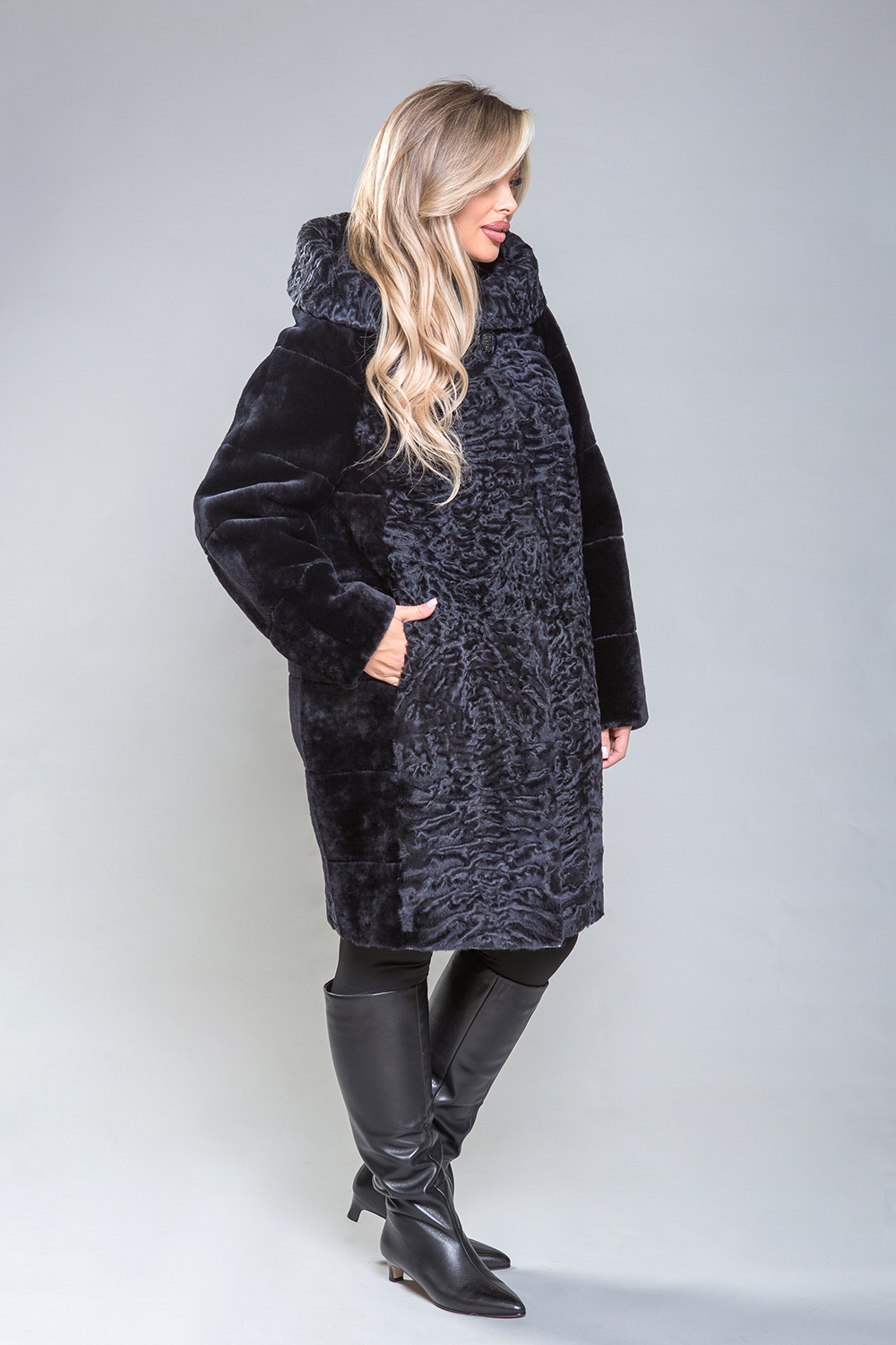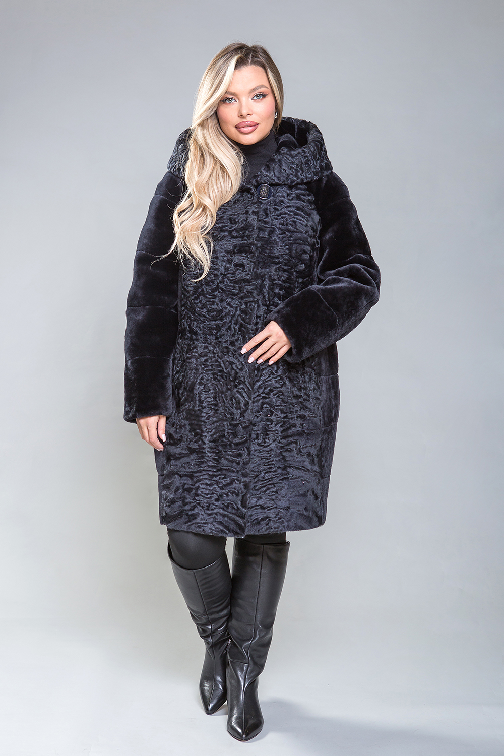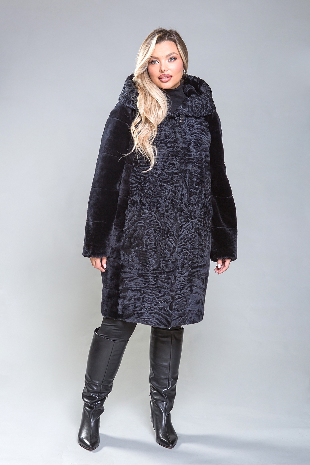 Элегантное полупальто создано из высококачественной овчины с поперечной выкладкой пластин. Капюшон и передняя часть украшены роскошным каракулем и изысканными декоративными стеклярусами. Карманы и борта выполнены из натуральной замши, а застежка — на клипсах. Длина изделия составляет 95 см. Черничный цвет прекрасно сочетается с любым стилем одежды, что делает эту шубку идеальным выбором для тех, кто ценит высокое качество.