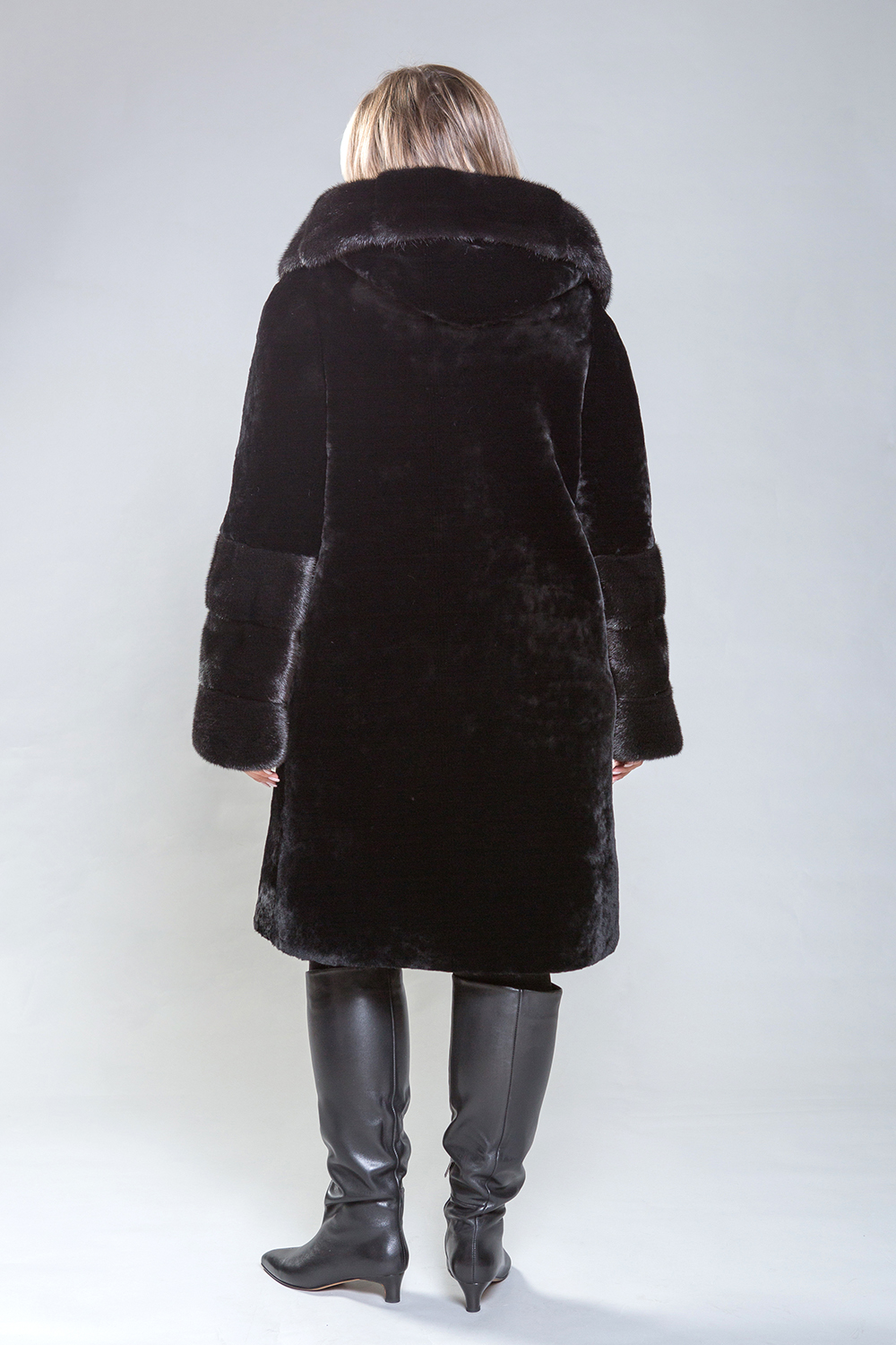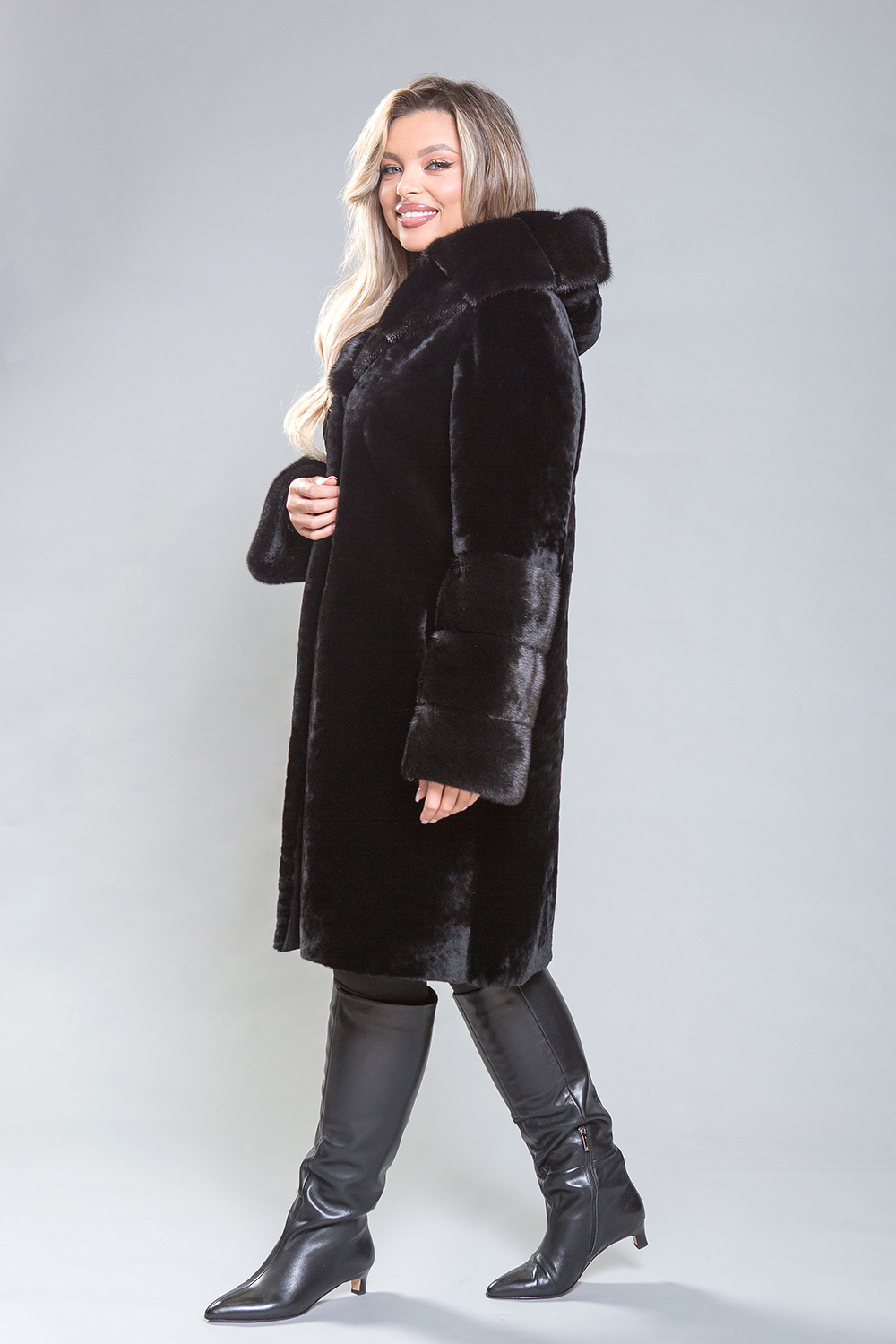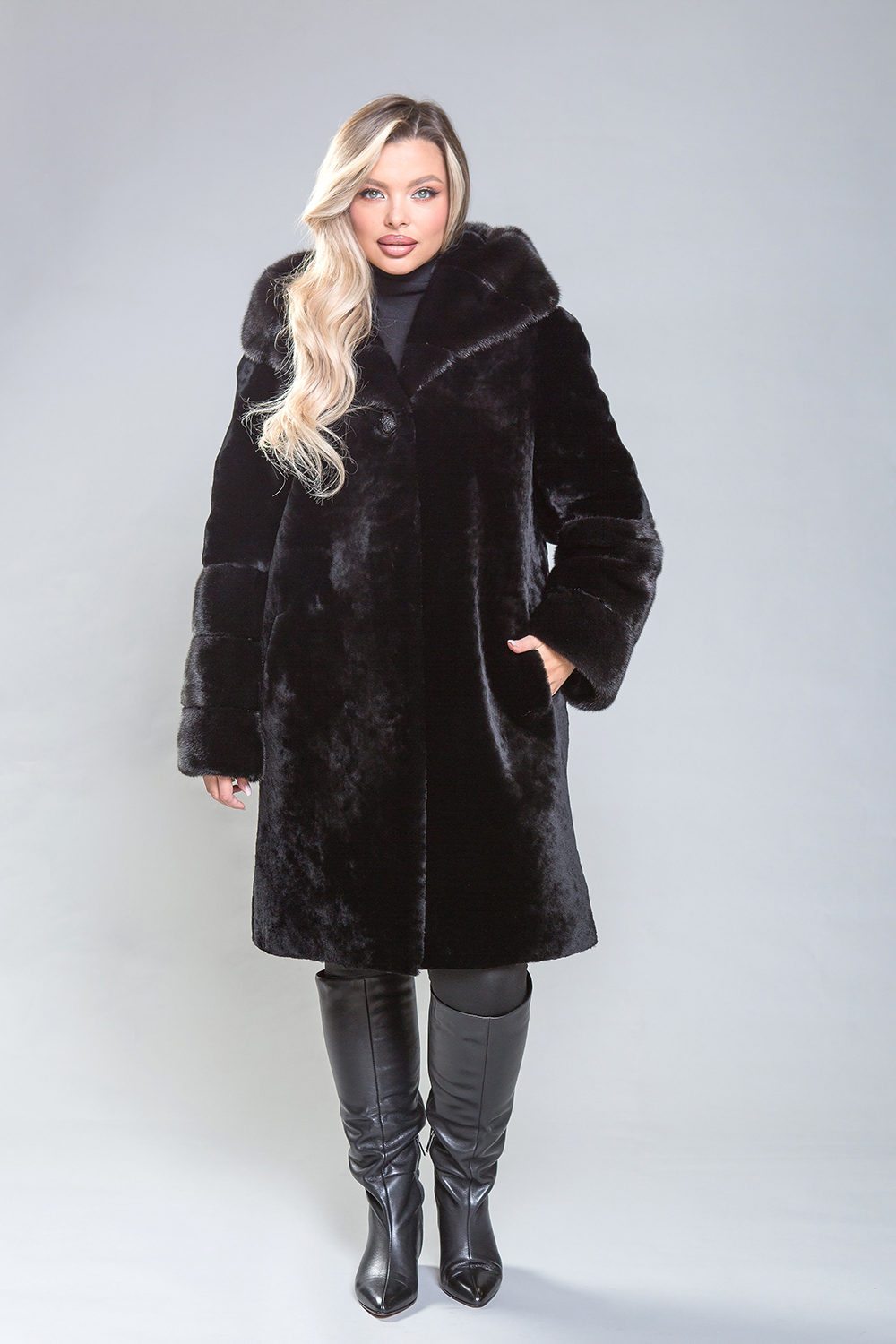 Полупальто из натуральной овчины олицетворяет элегантность и тепло. Изысканный мех норки и мелкие блестящие стеклярусы украшают рукава и капюшон, придавая изделию особый шарм. Шубка изготовлена из высококачественной овчины класса люкс. Прямой лаконичный силуэт подходит для женщин любого телосложения и обеспечивает максимальный комфорт. Длина полупальто составляет 100 см. Капюшон застегивается на две аккуратные пуговицы, а сама шубка — на стильные клипсы. Эта модель гармонично сочетает утонченность и современный стиль.