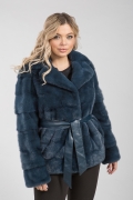Курточка из меха норки. Английский воротник модели трансформируется в классический. Крой изделия поперечная выкладка пластин. Внутри на талии, на рукавах и по низу модели курточка оснащена регулирующими утяжками. Рукава шубки могут трансформироваться в более укороченные с помощью скрытых молний. Длина изделия 70 см. Кожаный пояс идет в комплекте. Великолепный цвет муссона с синим отливом будет к лицу и блондинкам и брюнеткам! Создайте новый модный, зимний образ!