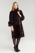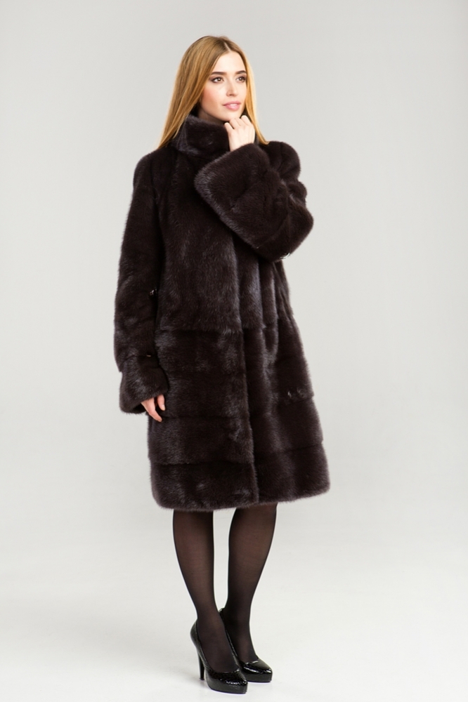 Полупальто из меха норки. Воротник стойка. Крой модели роспуск, низ изделия поперечная выкладка пластин. Рукава шубки при необходимости трансформируются в более укороченные. Длина модели 100 см. Изделие оснащено регулирующими утяжками на рукавах, по низу модели и в зоне талии.