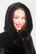 Полупальто из норкового меха с капюшоном. Модель выполнена в технике роспуска с добавлением пластин. Рукава оснащены регулируемыми утяжками. В комплекте пояс из того же норкового меха. Длина изделия составляет 100 сантиметров. Эта молодежная модель очаровывает своей изысканностью. К низу полупальто слегка расширяется, образуя юбочку, а сзади формируются красивые фалды. Комфортное лекало обеспечивает удобство носки, а благородный черный цвет меха придает образу элегантность и статусность.