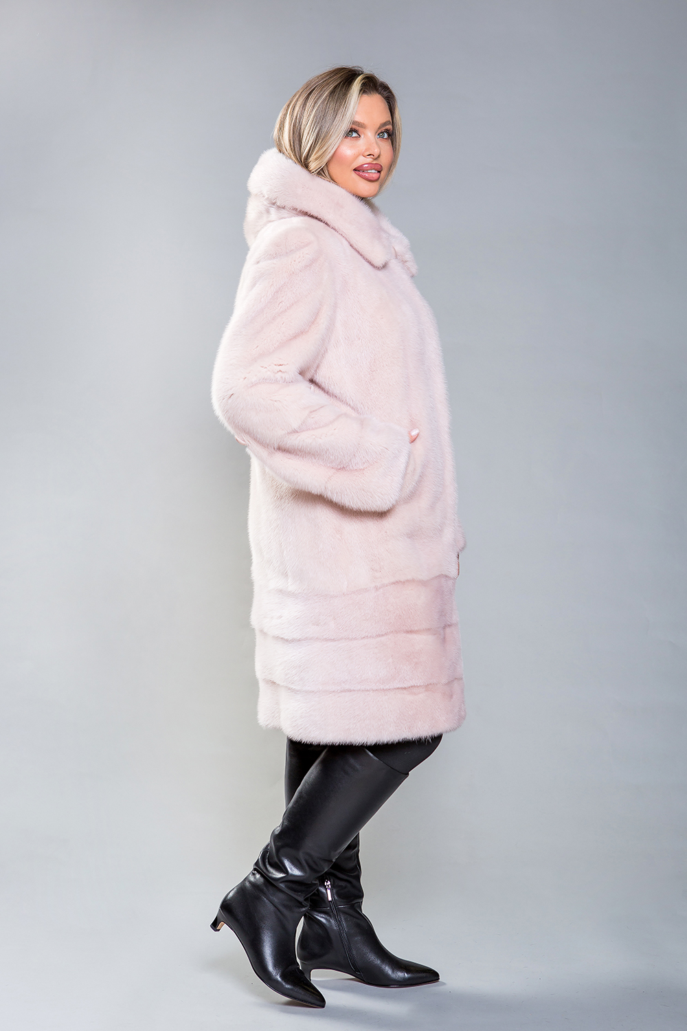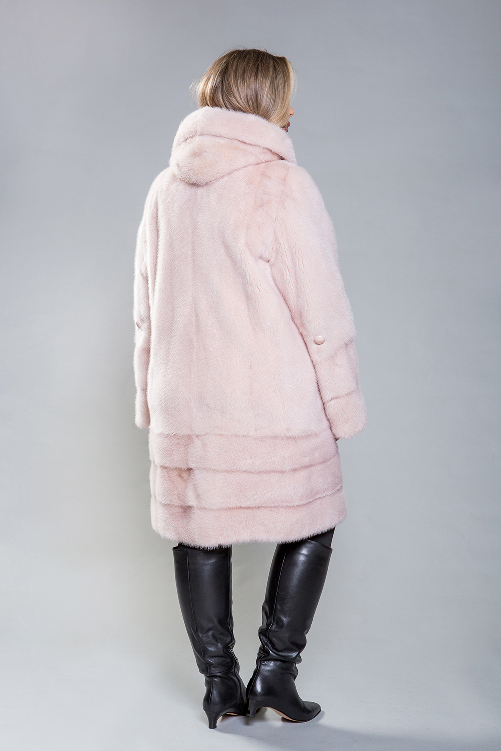Полупальто из норкового меха с эффектным капюшоном выполнено в комбинированном стиле. Верх изделия создан с помощью техники роспуска, а низ состоит из поперечно выложенных пластин. Модель оснащена регулируемыми утяжками на талии и рукавах, что позволяет идеально подчеркнуть фигуру. Длина полупальто составляет 100 см, а длину рукавов можно легко скорректировать. Благодаря удобному крою и качественным материалам, это изделие станет вашим незаменимым элементом гардероба, обеспечивая максимальный комфорт. Элегантный розовый оттенок добавит вашему образу изысканности и гармонии.