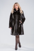 Полупальто из меха норки с капюшоном. Крой изделия роспуск. Модель оснащена регулирующими утяжками на рукавах и в зоне талии. Длина изделия 100 см. Слегка расклешенный низ модели обеспечивает шубке кокетливый вид. Благородный черный цвет норкового пальто представляет неограниченные возможности для любительниц экспериментов, регулярных изменений стиля, имиджа!