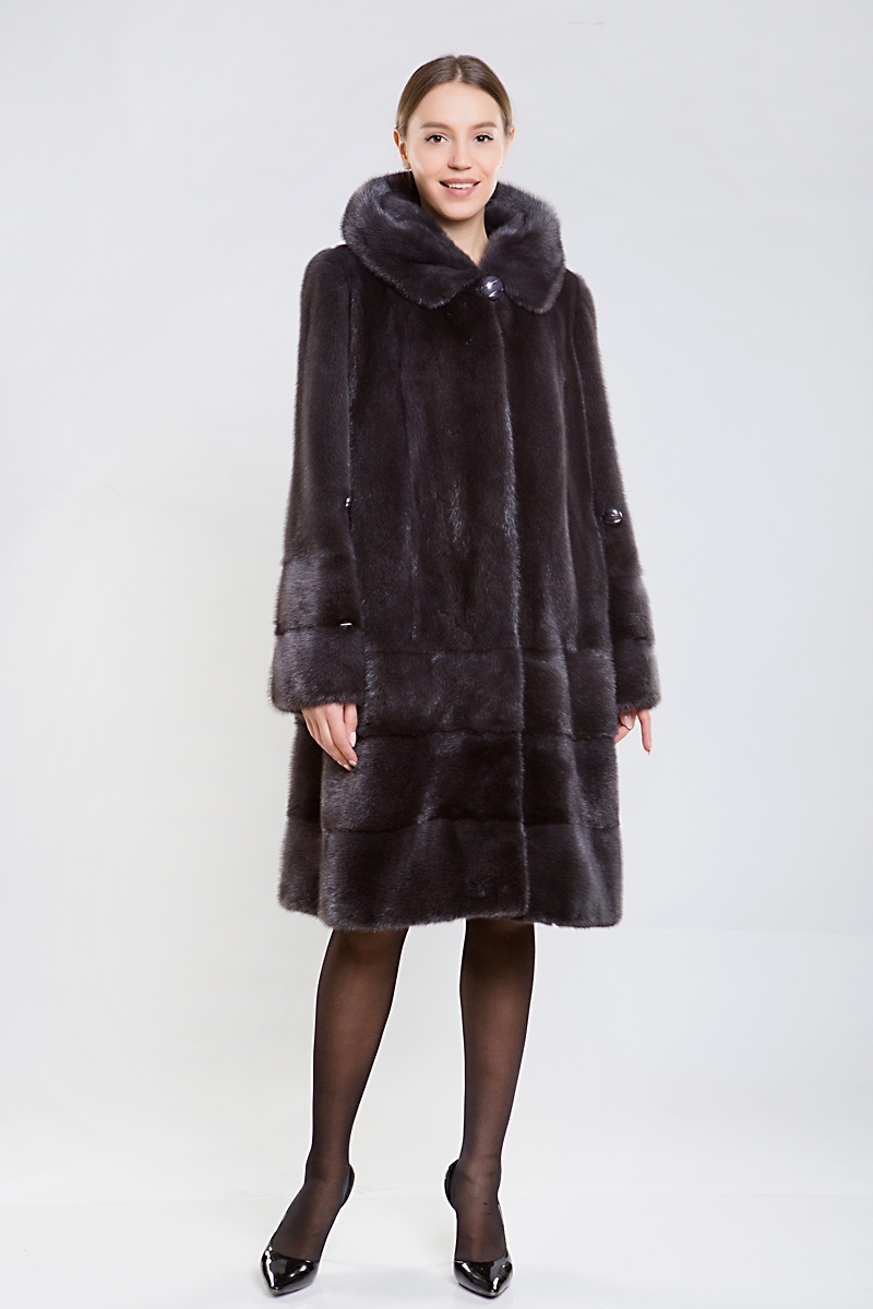 Полупальто из меха норки с капюшоном. Крой изделия комбинированный. Верх модели собран в роспуск, а низ изделия поперечная выкладка пластин. Рукава модели трансформируются в более укороченные. Длина изделия 100 см. Шубка хорошо сидит на любой фигуре. Гарантирует элегантность и утонченность образа!
