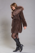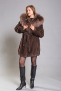 Полупальто, выполненное из меха норки, отличается роскошным капюшоном, украшенным мехом тонированной лисы. Крой изделия представляет собой роспуск с добавлением пластин, что создает слегка присборенную к низу модель. Длина пальто составляет 90 см. Меховой пояс не только подчеркивает талию, но и придает стройность фигуре. Эта миниатюрная шубка выглядит невероятно эффектно благодаря великолепному капюшону из лисы, который вносит нотки шика и гламура в зимний образ. Создайте себе комфортный и стильный зимний look!